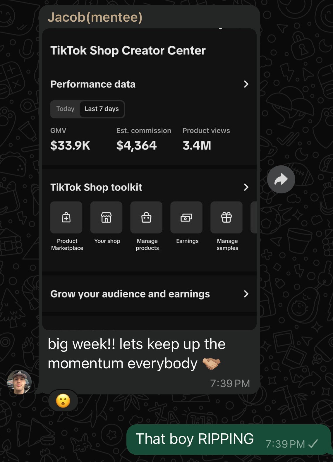 Jacob did $4K+ in his first month in the program